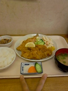 「生鮭フライ定食」遅くなったので、アジフライがサービスしてくれた!感謝!!