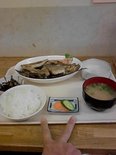 頼もうとしたが、「いいのがるよ、兄さん!」と、きくちの店員が…。いただいたのが、「カンパチのあら煮」でした!美味し!!