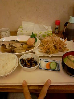 きくち食堂カレイの煮つけ定食にかき揚げをつけてもらう。美味し!