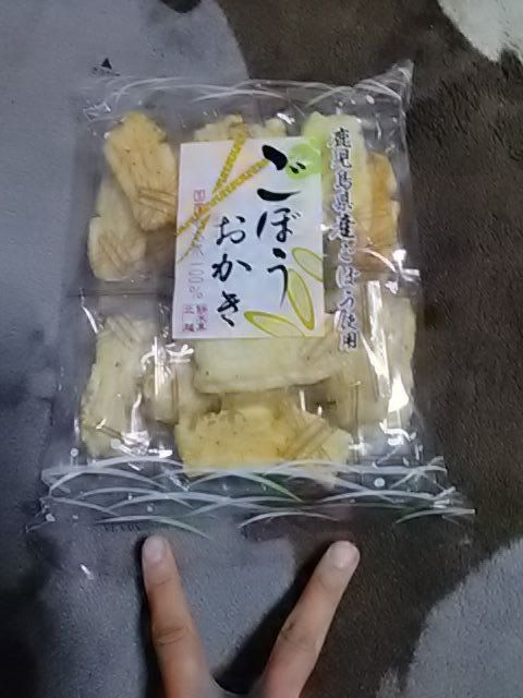 サンドウィッチにつけて食べると意外に良かった、うまし!しかし、画像は「ごぼうスナック」これもウマシ!