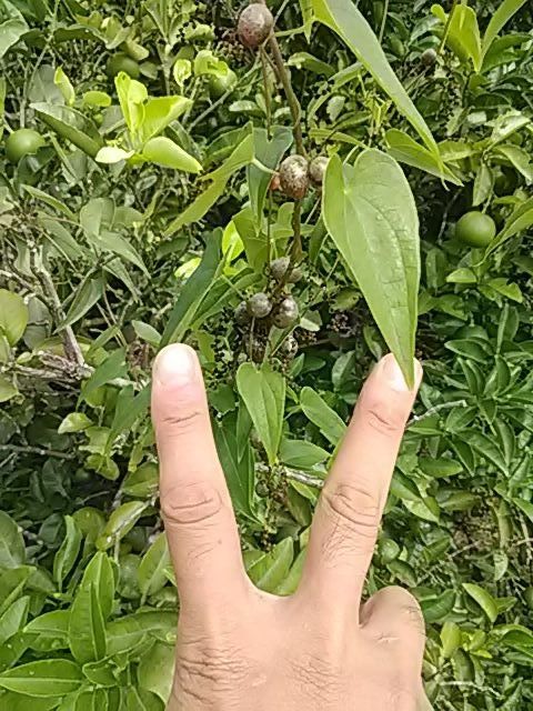 自宅(近く)の畑のミカンの木にヤマイモのムカゴを見つける!