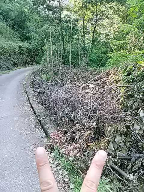ブンブン近所の空き家近くの道、現在利用者がいなく手入れさて無い。結構不気味…。