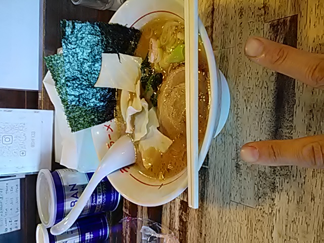 ラーメンを食す。トッピングのキャベツがなんとも言えず、うまし!