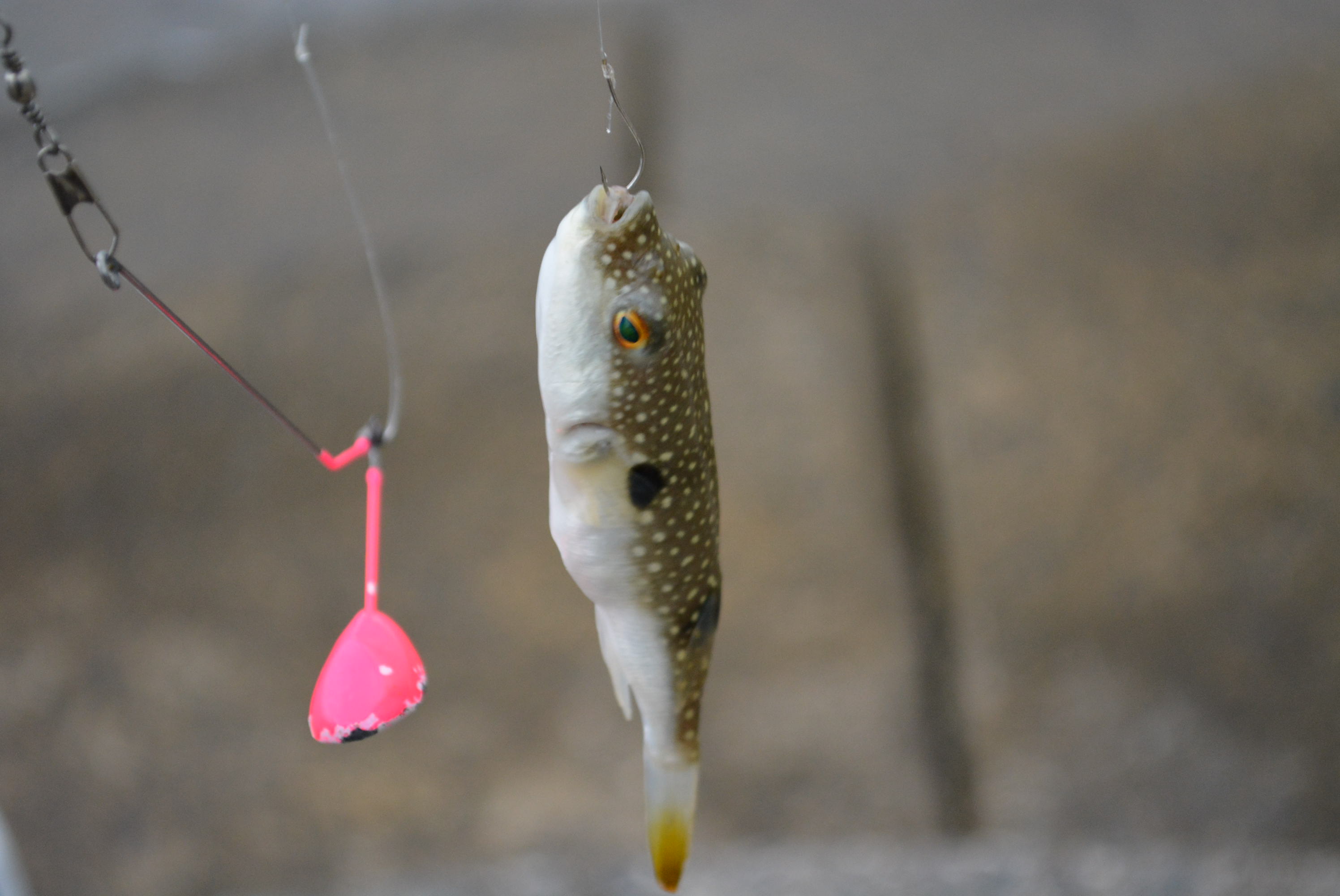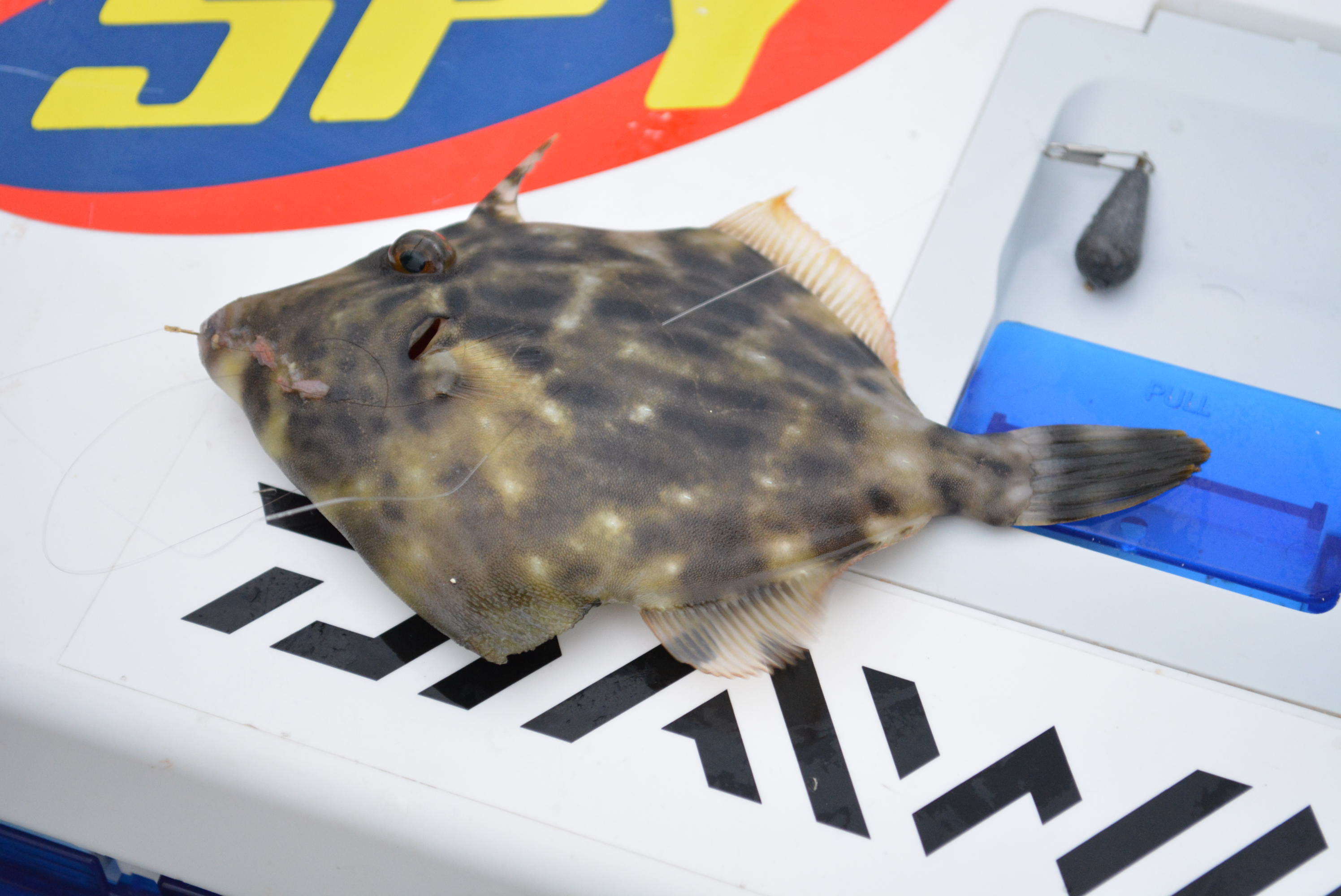 夫が穴釣り仕掛けで釣ったカワハギ。