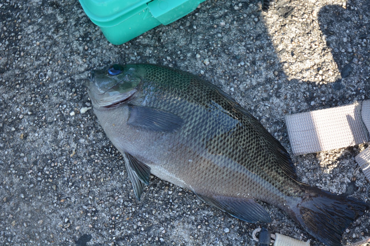 パン粉団子で釣りましたが、私はいい具合に団子を作れず投げた瞬間壊れて付け餌が離れることが多く、なかなかうまくいきませんでした。付け餌はオキアミでした。
