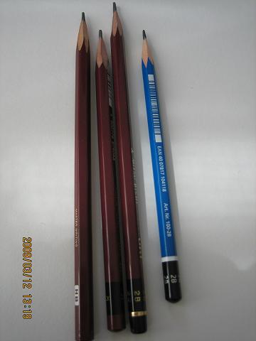というわけでなんちゃって講座でも開きたいと思いますまぁ、誰でも知ってるようなことを適当に描いていくだけですがよろしくお願いします間違っててもそれは大目に見てくださいねwとりあえず最初なので鉛筆の種類から始めたいとおもいますまぁ、種類っていっても世の中には数限りなくある鉛筆ですから全部紹介するわけも行きませんそこでまぁ、デッサンするのに代表的と言えば代表的なuniとステッドラーの紹介をしましょう右の三つの茶色のものがuni、左のがステッドラー(正式にはステッドラールモ グラフなぜuniが三本写ってるのかというとそれぞれ種類が違うから左からuni-star,uni,hi-uniですまぁ、違いは描き味と値段ですかね一応大体の値段はuni-star:わすれたw一番安いuni:¥90hi-uni:¥140ステッドラー:¥160ですかねだいぶ違うんですよねまぁ、こだわらない人は何でもいいんですが微妙に色味、描き味が変わってきますそもそも鉛筆の違いはなにかといわれたら大きく違う部分は芯の部分です芯は黒鉛と粘土をまぜて、焼いたものがそれですそして粘土の量の調整によって硬さを変えていますつまり粘土の質が大きいと思いますまぁ、どうでもいいやって人にはどうでもいいんですけどねーこだわりたい人はこだわってみてはいかがですかねw