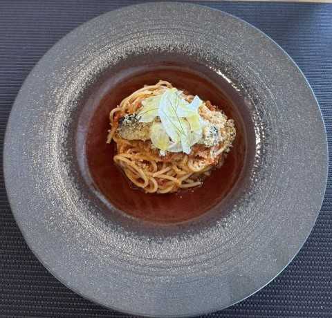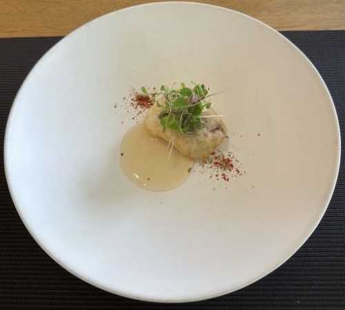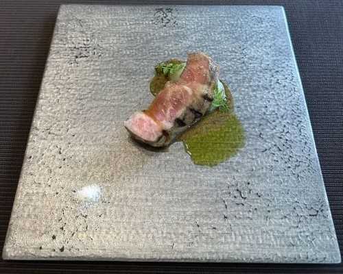 魚料理はアカハタと自家製パンチェッタ白梅酢ソースでした。