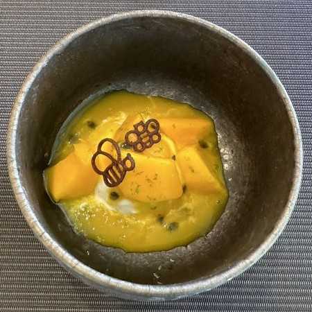 デザートはパッションフルーツフレッシュマンゴーとライムジェラートでした。