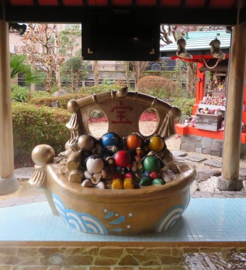 七福神のさるぼぼ等があって、さるぼぼ黄金足湯もありました。