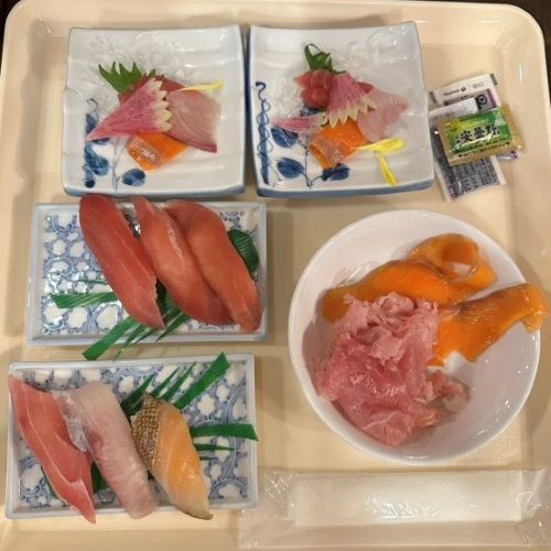 寿司、刺身、生ハム、ローストビーフ、シュラスコ等たくさん食べました。