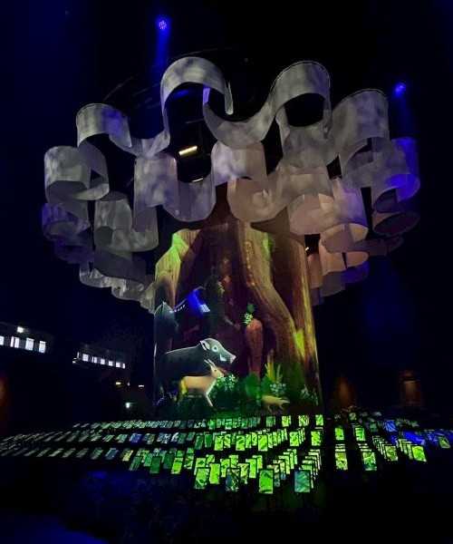 大きな木のスクリーンと沢山の端末機が綺麗で、蝶を飛ばしました。