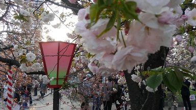 造幣局の通り抜けも、とんでもない数の屋台も左側の桜並木の内側に。