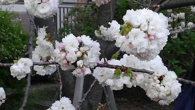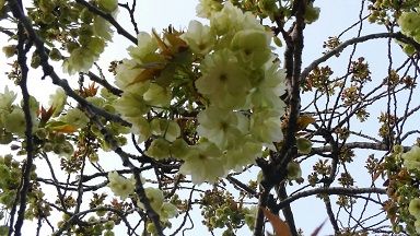 これは今年の桜「鬱金」。花の色味が黄色いところからついた名とのこと。