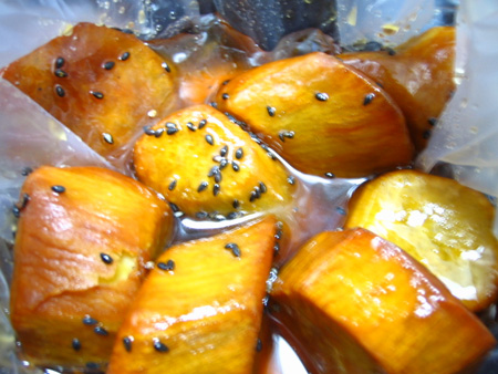 浅草には、さつま芋を使ったお菓子屋が沢山あります。芋羊羹・芋きんつば・大学いも・スイートポテトetc.そんな中で、華がいつも買うのが原料のさつま芋卸問屋が経営する、さつま芋菓子屋【興信】。素材が違います【大学いも】この蜜の照りピカピカじゃ~外はカリカリ、中はホクホク美味しい