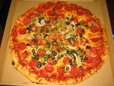 【コストコ】のフードコートのピザ大好き行くと必ず買います!直径45センチはある巨大ピザです。本場アメリカの味で美味しいですよしかも¥1575円45センチで¥1575円ですよ!!激安ですパーティには欠かせません
