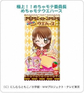 こんばんは~今日は、ほぼ身体の痛みも消えちょっとずつですが、元気になってきています1週間も寝込んでいると、家の中が大変な事に~今日は、お洗濯3回もまわしちゃいました。洗濯機がやってくれるとはいえ、疲れちゃいました 昼間、バンダイのHPでこちらを発見しましためちゃモテ ウエハース で~す可愛いし、美味しそうですね~。プラカードじゃなくて、シールなのがちょっと残念・・・でも、とっても可愛いですよ~