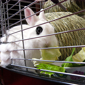 今日からお仕事を始めました。その間は家を空けるので、ドリィはお留守番です。その間はおやつをあげられないので、お腹空かないかな?大丈夫かな?とちょっぴり心配してましたが、ドリィは牧草を食べて空腹をしのいでいたようです。今日は帰りが遅くなってしまったので、急いでサークル活動を開始。でもなんだか落ち着きがありません。やっぱりお腹が空いてるのかなと思い、いつもより早めにケージに戻してご飯をあげました。サラダを用意している間、早くしろ言わんばかりにこちらを見つめていました。さっそくサラダをあげたところ、ガツガツ!とまたたく間に完食。やっぱりお腹空いてたんだね!
