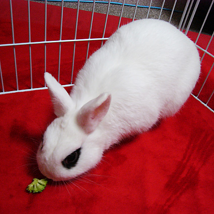 ドリィぼっちゃまのお好きな野菜と言えば、やはりキャベツです。しかし、キャベツばかりを食べるのはよくないとのことで、先日からブロッコリーを召し上がっていただいております。が。ブロッコリーの茎をそのままお出ししても、召し上がってくれないのです!以前はバリバリ召し上がっていらしたのに…。なんとか召し上がっていただかねばと思い、ブロッコリーの茎を縦にうすくスライスしてみたころ、やっと召し上がってくれました。いつからそのようにお上品なウサギになられたのですか、ドリィぼっちゃま?
