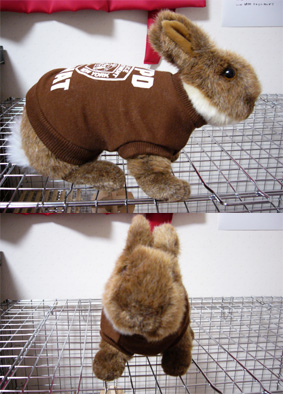 新しいウサギさんがきました。「ネザーランドドワーフトルソー」です。その名の通り、ネザーランドドワーフのトルソー、ていうかぬいぐるみ。トルソーとしての機能は十分なんですが…か わ い く な い。横から見ても、正面から見ても、いまいち愛せない。さすが、油で揚げた小麦粉菓子をウサギのおやつと称して売ってる○ルカン商品!どうせ作るんだったら、もっといい仕事をしてほしいです。大きさはドリィよりひと回り大きい感じかな。 ネザーランドドワーフトルソー