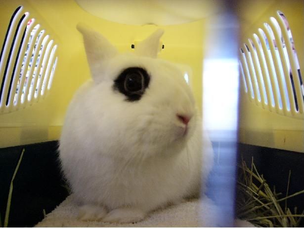 いよいよウサウサが飛行機に乗る日がやってきました!ハードキャリーの中に牧草を敷き詰め、保冷材にタオルを巻いて入れました。いつもサークルへ移動するときのようにキャリーの入り口を差し出すと、違和感を感じているようでしたがすんなり入ってくれました。水分補給のためのブロッコリーを入れたら、さっそくムシャムシャと食べ始めました。キャリーを持ち上げてもお構いなしに食べ続けています。よしよし、その調子で頑張ってね。家を出て、駅に着いたところで様子をうかがうと…お、やっぱりちょっとおびえてるみたいです。耐えるのだ!!空港に着き、最後の水分補給のためにお水を差し出しましたが、口をつけず。だけどおやつのドライフルーツはパクパク平らげました。預けるためにスカイマークのカウンターへ。預ける前に保冷材は取り出しておこうと思っていたのですが、結局そのまま預けちゃいました。キャリーごと重さを量ると4kgだったので5000円(~10kgまで)を支払い、「死んでも補償はありませんよ」的な誓約書にサインをして、ウサとはひとときのお別れです。飛行機は予定時刻どおりに福岡空港に到着しました。いそいそと迎えにペット受け取りカウンターへ向かいました。お、キャリー発見!どうやら他のペットは乗っていなかったようです。ウサはスカイマークのお姉さんから鼻先をつんつんされていました。駅で見たときのようなおびえた様子もなく、元気そうにお姉さんの指先をクンクンしていました。なんと現金なラビット!やれやれ、無事にフライトを終えて一安心です。実家に着くなり牧草を食べ始めました!元気元気!