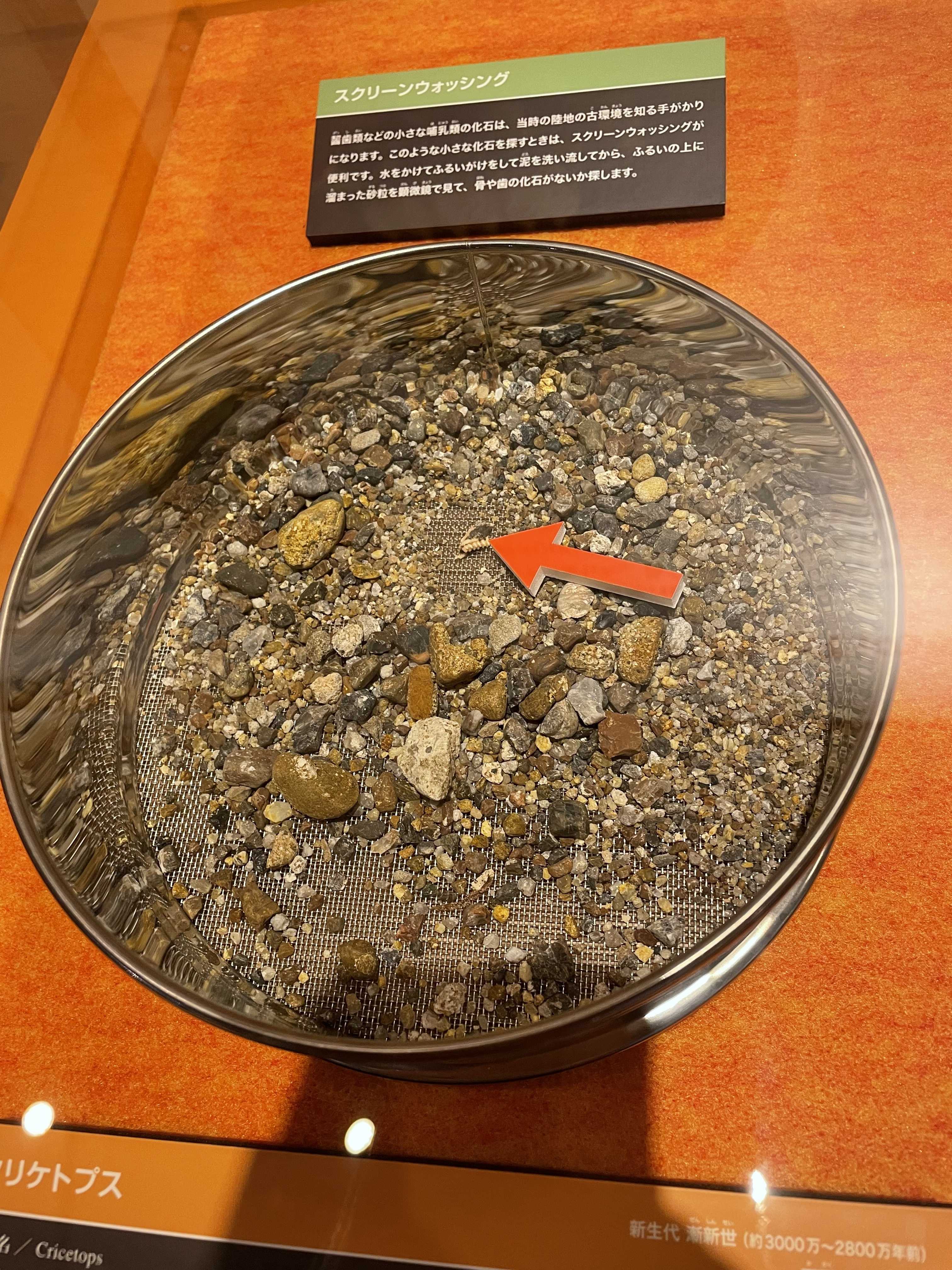 化石発掘は砂漠の中での体力勝負な部分もあればこんな小さな部品を沢山の砂の中から見つけ出す作業!