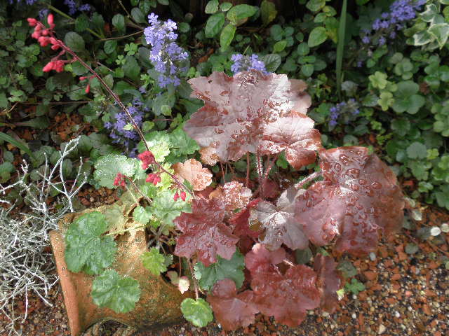 渋可愛寄せ植え全部が成長凄くて鉢が見えない。。。水切れも凄いので地植えにしたよ!!この鉢には多肉ちゃんを植える予定ヽ(^o^)丿 今日は久々の仕事で疲れたよぉ~(^。^;)急ピッチで給与計算・・・今月は昇給と重なってまたもやバタバタだよぉ~少しだけど昇給したから嬉しいけどね^^p感謝して頑張らないとね!!! 連休中に頑張ったシェードガーデン!少しづつお花も成長してきたよぉ午後から1時間程日が射すのちょうどお花を植え込んだ所だけ日差しが。。。 ミルク缶も1つココに移動させたよ!!クリローさんの鉢がピッタリ入っていい感じ(^ω^) お花も咲いてきたよ!実家からもらってきたオキザリスとっても綺麗な色砂利に地下植えしたけど大丈夫そう^^♪ 都わすれ初めて植えてみたじっくり見るととっても可愛い♪ ホスタ&ヒューケラもモリモリしてきたお花ももう少しで咲きそう。。。 デッキ上も少しづつ飾りしてるけどお庭とは違って難しい(´エ`*)ハァなかなか上手く飾れないので只今ベランダガーデンの勉強中このシェルフとかの飾りはまだ何とかなるけど問題はウッドデッキの床だよぉ今はお見せできない状態だよ^^;また上手く出来たら見てね!! 今日もありがと!!ポチ応援が増えてきてとっても嬉しい♪みんなの応援がパワーになってますヽ(*´∀`)ノにほんブログ村