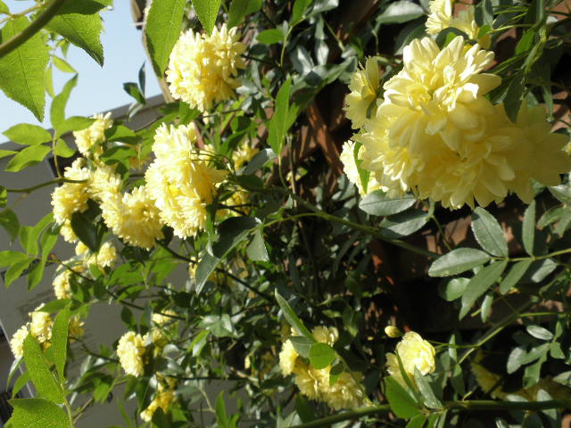 こんばんわぁv怪我を気遣ってくれてホントありがとう☆*・。・。・。・。・*おかげさまでだいぶ良くなってま~す!! 今日は我が家のお花いっぱい見てねぇ♪ 満開になってきた黄色のバラどんどん咲くよぉ~~ヽ(^o^)丿咲きかけのこの感じも好き!!庭を始めてまず植えたバラ。。。まだ、何にもわからないころで名前も覚えてないの^^;開くと少し違う感じになるね!花弁がヒラヒラになってきたぁ~~♪あと黄色のミニバラさんも咲いたよ!!この子も名無しちゃんいつもHCとかで安くなってる子を連れ帰るので名無しちゃんが多いうちのバラたちまたまた名無しのパープルのミニバラ冬はピンクになって咲いてたけどちゃんとパープルに咲いてくれたよ♪去年のこぼれ種からのキンギョソウ咲いてくれると思ってなかったのでヽ(゚д゚;)丿!!ちょっと感動!!ベルフラワー去年の子はいなくなったと思って今年また買ってしまった子切り戻ししてたらまた元気に咲きだしたよ(*^0^*)ノ こないだ設置したアーチに絡めたジャスミン満開になってきたよ!!! 毎日仕事から帰ってくるととってもいい香りで迎えてくれるヽ(*´∀`)ノアップで見ると可愛いね♪♪ 最近少しづつカウプレ商品頑張ってるからねヽ(*^^*)ゞ週末くらいには紹介出来ると思うので。。。 今日も遊びに来てくれてありがと!!!いつもポチうれしいよぉ~~今日もよろしく♪(*´∀`)