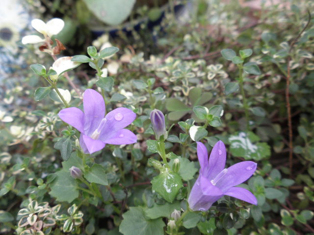 ベルフラワー?だったかな??何年も日当り悪い裏のデッキに置いてたらどんどん元気なくなりお花も咲かなくなっちゃったので去年植え替えてあげたのそしたら、元気を取り戻したようでお花が咲き出したよヽ(^o^)丿タイムに埋もれて咲いてますぅ^^p テディベアやはり今日咲いてましたぁん~~やっぱり可愛い(*^0^*)ノもっといっぱい咲くといいな!!! ピエール ドゥ ロンサールぷっくりした蕾さん年末にお迎えして初めてのお花☆。・*早く咲かないか毎日ワクワクしながら見てるけどなかなか咲きそうにないねぇ^^; タツナミソウいろんな所でコンモリと咲いてる!ここでも咲いてます。。。あんなに雨が降ったのに綺麗(^ω^) ハーブガーデンもう何が何かわかんないくらいになってる(´エ`*)ハァワッサワッサだぁ~~(^^ゞ雨でグングン伸びたみたい。。。休みに何とかしないとね!! さぁ~カウプレ宣言したから頑張らねば。。。 今日もありがと!明日からいいお天気みたいなのでアーチ設置もガンバルよ!!!ガンバレ~!の応援をポチっとお願いしま~すヽ(*^^*)ゞにほんブログ村