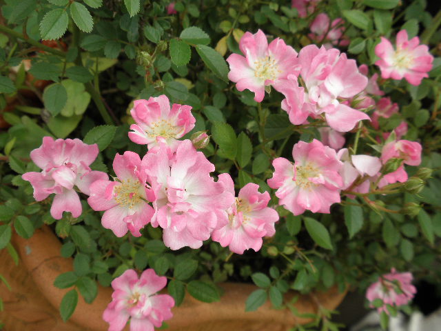 ローダンセマムちょっと行儀の悪い子。。。でもお花は凄いいっぱい咲いてくれてるよぉ^^p 今日はムシムシと暑かった~^^;明日雨みたいなので庭作業で出来る事をやっとかないとって忙しい1日!月1度のアレンジ教室もあったのでバタバタ(´エ`*) 怪我の状態はというと。。。ほぼ完治ですよぉ^^♪でも、無理はしないように頑張ってるからね!! 雨でバラが散りそうだったので早めにカットしたよ!!カットしたバラを庭にポイポイしてるとこんなにぃ~でもまだまだ咲いてるし蕾もいっぱいあるから、楽しみ♪ 今日は昨日届いた雑貨を***可愛いのよぉ~♪まず、全部並べてみた。。。ワイヤー雑貨だよんヽ(*´∀`)ノ前にぴこままさんとこで見て一目惚れ~で、ちょこっと覗いてみたのぉ~すると、こんな可愛いのに安いし~もう即買だったよ!!!Sora-no-Tobira*ブログはこちら→見に行ってみてぇ~~~!! では1つづつ見てね(*´∀`*)ミニチュア・自転車 コーヒーポットポットの下のワイヤー・ドイリーはプレゼントで頂きましたぁ^^p ブーツ多肉ちゃんを植え込む予定だよ!! ワイヤー雑貨あたしも少し作ったけどやっぱり全然違うよ^^;とっても綺麗だし。。。当たり前か(;´∇`A`` 明日はいよいよカウプレ商品の紹介&受付で~す!!絶対見に来てね!!!いっぱい応募あると嬉しいから。。。 今日も最後までお付き合いありがとう♪(*´∀`)黄色のバラをポチって応援してね!!