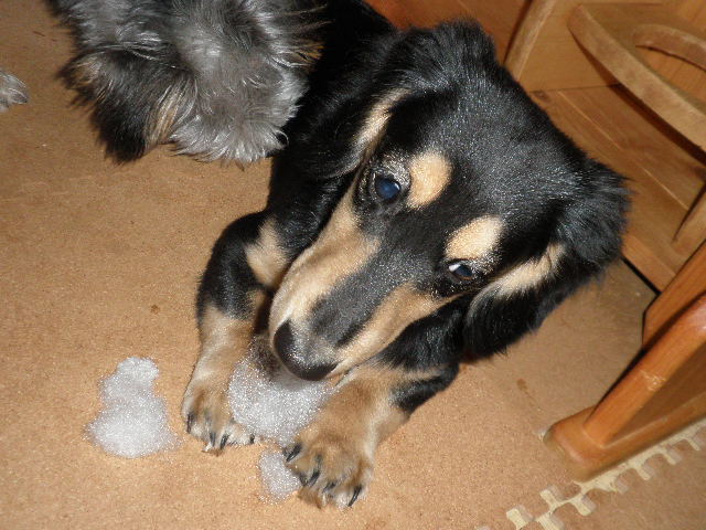 今日はREONのおしりから~PCしてる時いつもイスの下に入り込んでこの格好して寝てるぅ。o@(^ゝω・)@o 昨日は次男の誕生日おめでとうコメントいっぱい貰って゚・:,。★\(^ω^ )♪ありがと♪( ^ω^)ノ★,。・:・゚次男も喜んでたよ!!! アメジストセージやっといっぱい咲き出した♪ アジュガ&???あ~名前忘れたぁ~頭の回転悪くなってるよぉモフモフのやつ(((*≧艸≦)ププッ思い出した^^; ラムズイヤーだよね!ヨカッタ!! ルメックスグングン伸びてきたぁ~このスジスジが好き!!葉の裏にもスジスジあるよね♪ 最近写真撮る時間ないからお庭編はネタ切れ~ なんで今日はAndy&REONをどうぞ毛布争奪戦そこらへんクチャクチャにしてエーン!o(>д<。 o)。oもう諦めてますぅ 勝者!Andyやっぱり俺は兄ちゃん(おっさんやけど)やから強いやろヽ(◎´∀`)ノ!! 敗者!REONやっぱり兄ちゃんには勝てないでしゅ。゚+(σ´д`。)+゚・クスン...ちょっとだけかして~見つめてみるが怒られるヽ(^ω^(・xq` )ゝドンマイダーREON頑張れ~~!!! そうそう REONがやってくれましたぁこないだ買ったマッサージクッションの電源差込部をカミカミ。。。カミカミ。。。何かおとなしいなぁって思ったら。゚(*´□`)゚。ウワェェェン!!今何でも噛みたいみたいで色んなものが犠牲になってるのよぉでも、コレだけはショックで。。。雷落ちましたぁ(#`皿´)<怒怒怒怒怒怒!!! その時のREON@(;・ェ・)@ノ 反省…d(>∇<;)ゆるちて♪いつも怒られるとこの格好か机の下に避難するコレ見ると許してしまう。。。(とりあえず使えるので まぁいっか!) 小さい頃って人間もだけどワンコも大変(≡ε≡;A)... 明日・明後日はお天気かなぁ~裏のデッキもゴミ置き場状態だから何とかしたい。。。前に買ったBOXとかも早く設置したいしなぁ♪ o(゚▽^)ノシまたねぃ♪ポチ(´・ω・)ノ★*゚*ヨロシクデス*゚*☆