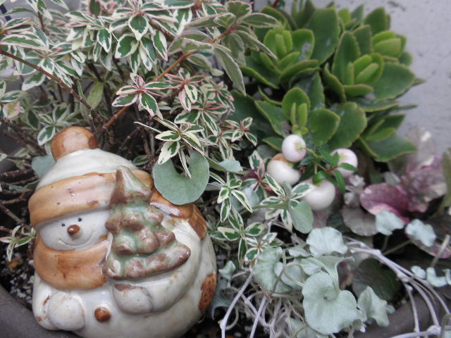 ユリオプスデージー 今日はリース作りに行ってきましたぁ会社のおじさんが山登りが趣味でいろいろ採ってきた木の実などで作ります。お庭に植えてあるローズマリーやユーカリなどを自分でカットして好きな木の実を選び手作りのリースに付けていきます!! とっても楽しく作る事がだきたよ+.*゚ルン♪d(d´∀`)(´∀`b)bルン♪゚+.*゚ いいの出来たから見てぇアップで いろんな木の実があって面白いでしょ!! 出来上がった頃にお昼ごはんとお婿さんが作ってくれたケーキをご馳走になったの美味しかった☆:*・゚(●´∀`●)ホェ:*・゚いいお婿さんだよね!! お家やお庭もとっても素敵だったんだけどどんくさいアタシ。。。カメラ忘れて行ったのエーン!o(>д<。 o)。o○またの機会があればちゃんと撮ってこよう♪ 帰りに骨董市やってたのでいろいろ物色してきましたぁまた明日紹介するね!! 昨日写真撮るの忘れてたツリー今日撮ったので見てね!!金の鈴&リンゴのツリー高さ20cmくらいの小さいのだよ!! それからこんなんもあったよ^^pスノーマン&ペイント鉢のツリーこれはもっと小さいの☆.。.:*・゜∋(。・"・)-[超ヵゎE] 今日は疲れたのでこの辺でo(*´ω'*)o゙ グッ♪o(*'∀`*)ノ゙ バ-イ♪ポチ( ´艸`)ド-ゾ (っ´▽`)っ))ヨロシク♪