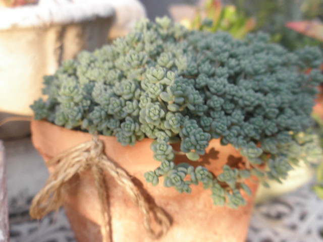 アメジストセージもふもふで可愛いぃ~~♪ 昨日はご心配おかけしましたぁすぐ薬飲んで早くに寝たので今日はすっかり元気!! こんなアタシですがとりあえずアンディ家の大黒柱?ちょっと頼りないけど。。。ガンバルよぉ(*´・∀・)*´-∀-)ウン 暖かいコメントいっぱい貰って☆.。゚+..。゚+..。..゚+..(ゝc_,・`。)アリガト ♪ 今日はお庭の元気っ子を集めてみたよヾ(*´ω`)ノ゙ 虹の玉&オーロラちょっと色づいてきたかな?アルミのカップに植えてます横には赤い三輪車!可愛くてお気に入り☆:*・゚(●´∀`●)ホェ:*・゚ こないだの多肉名前解らんけどちょっとづつ花開いてきたよ!!!いっぱい花付いてて☆.。.:*・゜∋(。・"・)-[超ヵゎE] お次はモモちゃんに貰ったリース アタシの管理がよくないのでいっぱい夏に暑さで溶けてしまってちょっと全体は移せないの。。。ちょっとづつ挿して修復中モモちゃんごめんね!!。+゚m(´・c_・` )m。+゚ユルチテ ミンサーの多肉もプリプリちょっとデカクなりすぎだね!お肉溢れてるぅ~アタシのお腹と一緒∵ゞ(´ε`●) ブハッ!! ミンサーの下ではシクラメンが元気に|三っ*ゝ∀・)っ 復活!!花咲いてくれるかなぁ~これからシクラメンやクリローが元気になってくるから楽しみだよ!! ほら!クリローさん元気やろ♪去年植え替えしたからちょっと心配だったけど新芽いっぱい出てきていい感じ~~(pq´ゝ∀・)゚+。:.゚ワクワク゚.:。+゚ 今日は頑張って更新したよ!ね!!じゃo(゚▽^)ノシまたねぃ♪ポチヽ(・ω・。ヽ)ヨロ♪(ノ。・ω)ノ シク♪(σ。・ω)σでっす♪