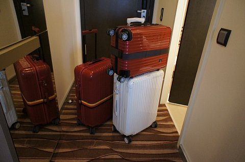 今回の旅行には,RIMOWAの66Lサイズを2つ持ってきました。それに今回 小RIMOWAを買ったのでスーツケースが3つになりました。大RIMOWA2つは機内預けにするので問題なのはチェックインするまでの移動。スーツケース3つをどうやって運ぼうか・・・・・・・・それで苦肉の策がこちら。とにかく運べればいいので大RIMOWAの上に小RIMOWAを載せちゃいました。小RIMOWAの中には免税のために税関でチェックされるはずのヘルシンキで買ったものを入れてあります。小RIMOWA自体が免税チェックされるものです。とにかくホテルから空港のチェックインカウンターまでこれならなんとかなるでしょう。空港チェックインカウンターまでエレベーターはいいのだけれどエスカレーターはちょっと大変でした。