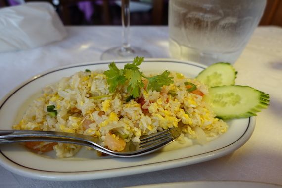 トムヤムクンとチャーハンを同時に持って来てもらうこと。
