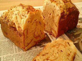 今年初のレシピをアップしました。パウンド型で作るレシピなのですが、この型は上から下まで同じ幅のキッチン工房オリジナルです。あまりない型で、すっきりしたシルエットに焼きあがるので、お菓子作りにはもちろん、パンにも使えて重宝しますね。今回ご紹介するレシピは、「アップルクランブルケーキ」です。東北はりんごの産地に囲まれているため、りんごを頂くことが多く、食べきれない…との声を多く聞きます。そこで、一番出回っている「サンふじ」で美味しいケーキを、と考えました。シナモンを効かせたりんごのプリザーブと、カリッカリのクランブルが最高ですよ!!冷凍もできるので、リンゴが悪くなる前に2~3本まとめて作って、保存しておきましょう。うちのりんご達も「ポクポク」してきた(食感が悪くなってきた)ので、ケーキにしてしまいましょうか・・・「レシピです☆」お~、ちょうど今、バターが入ったとの連絡が!!ラッキー。買いに行ってきます☆