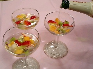 今回のレシピは、とっても簡単なデザートカクテルです。完熟のフルーツにシャンパンを注ぐだけ!なのですが、とっても美味しくて華やかなデザートになります。以前、銀座でデザートとシャンパンをいただいた時の感動を、気軽におうちで再現できたら、と思いました。レシピではお手軽なスパークリングワインですが、勝負時にはとっておきのシャンパンで。バレンタインに彼を呼んで、2人で甘~い夜を過ごしては♪「レシピです☆」
