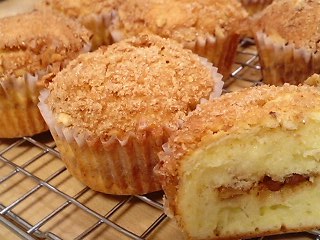 昨日の教室で作ったドーナツ。1個ずつ多く出来たので、息子用にといただきました。そしたら、息子、「残り物ならいらない!」とむっつり。主人は「贅沢言うな!」と言っていましたが、確かに子供といえども傷つくかもしれませんね。私が子供のころは、働いている母が職場のおやつをティッシュにくるみ(笑)持ってきてくれました。とても愛情を感じたけれど、それは、母が食べるのを我慢して私のために持ってきてくれたから。残りものとは違っていました。そういえば、ある料理研究家が、教室や撮影の残りを娘に持っていくと、絶対に手をつけなかった・・・という話を思い出し、反省。。。「ちゃんと作ってくれたのを食べたい」息子のために、今日は朝からドーナツを作り、2人でチョコを付けてスプレーをパラパラ・・・♪そうしたら勢いがついてしまい、これまたリクエストでカレーパンも揚げてしまいました~。ダイエットなんてどこへやら!!どちらも揚げたては止まりません。おいしくってしあわせ。。。8個揚げたのにあっという間の完売。写真撮れず。今度は水曜日の楓屋さんでの講習の試作に入りました。「コーヒーケーキ」です。コーヒーに合うケーキという意味のこのケーキ、マフィン型で焼き上げてお土産にも喜ばれそうです。サワークリームたっぷりでこれまた美味しい♪こちらは晩御飯のデザートにいただきました。せっかくドーナツを残してくれた、昨日の教室の方、すみません。私がありがたく頂きました(食べ過ぎ!笑)