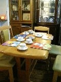 ワインとお菓子とランチそしてオーラソーマに絵本楽しいお喋り8回目のおうちカフェでした。(告知の時7回目と書いたのですが8回目でした♪)毎回来ていただく方のイメージやその方へのメッセージになるような絵本をセレクトしてテーブルの上にメッセージカード(絵本の題名と作者、出版社等)とともに置いておきます♪そして今回はその方に合わせて選んだ絵本と同じカバーの栞をプレゼントにお持ち帰りいただくことができました。毎回選んだものと同じ栞をプレゼントができるとは限らないのですができるだけそうしたいなぁって思います。絵本によってはカバーが最初からついていないもの、既に栞として使ってしまったものもあるので運がよければ同じもの・・・そんな感じです。もちろん栞のプレゼントは毎回必ずありま~す(^^)7時半に家を出て来てくださったセイラさん、2時間ちょっとしかいられないのに往復かなりの時間をかけて来てくださったAさん、前回も参加してくださって今回も来てくださったリピーターのほんわかマミーさん、念願かなって(!!!)やっとお会いできたひめきママさん、今日がオーラソーマのプロとしての初仕事のJUNさん。本当にどうもありがとう~~♪ぐりとぐらのポストカード♪そして今日のゲストさんのお名前、メニューなどを書いたコルクボード♪ロシアの絵本コーナー♪そしていつも思うのですが今日こうして集まった方たちも出会うべくして出会った・・・そんな感じでした(^^)鏡の前にそるとクリスタルランプを置くと二つ置いてあるみたいになるでしょう(笑)今回のテーマの「ぐりとぐら」の絵と絵本♪実は棚の扉が閉まらなくなってしまったの(^^;)で、発想の転換! 棚の中に電話を入れて上の棚に立体絵本を置きました♪狭いマンションだけどちょっとした工夫で少し広く見える気がする・・・(気がするだけ・・・? 笑)カフェのために専用のカトラリーを購入♪ 天使の羽のカトラリー♪まだこれからワインを置くところです。ワイン3本、6人であっという間にあけちゃいました~~♪あと1本くらいあっても良かった気がする・・・(^0^)今回のテーマの「ぐりとぐら」。あちこちに絵本を置いたりポストカードを飾ったり。でも何故かテレビの上のスペースだけ小池徹平くん(^0^) 許して~~(爆) 明日あたり写真集が届くので今からワクワク(*^^*)・・・・すみません、最近私、プライベートモードの時は壊れてます、徹平くんの笑顔のせいで(^0^)初対面とは思えないほどみなさんリラックスしていただいてとっても嬉しいです♪これもワイン効果でしょうか(^0^)そしてもうひとつリラックスできる秘密があるのですが(笑)オーラソーマ講師のJUNさん、おうちカフェリピーターさんでもあるのですが来るなり「いずみさん、ワイン♪」(爆)初仕事、とっても緊張しているためワインでリラックス♪私も早速ワイン♪都合により少し遅れていらっしゃるゲストさんをお迎えするころにはほろ酔い(^^)今日のパスタは毎回定番のジェノベソースにもうひとつは今日はかにトマトクリームソースの2種類♪マクロビパンや国産小麦のベーグル・・・今回は無農薬トマトがまた手に入ったのでトマト、そしておつまみにはチーズやハム、アーモンドなど定番♪お菓子も色々用意♪毎回どんな種類を用意しようか考えるのも楽しみです^^穀物コーヒーは毎回とっても人気があります^^今回はオーラソーマのボトルを選んでもらっている間にランチの準備をしてました♪みなさんが和やかに楽しそうに話しているのを聴きながらランチを用意する(パスタを茹でたり絡めたり、切ったりするだけだから簡単♪)のがとっても楽しいです^^今回はリクエストによりみんなの前で絵本を読みました♪みんながよく知っている『そらまめくんのベッド』(福音館)そして私の大好きな『光の旅、かげの旅』(評論社)とっても楽しいひと時を過ごすことができました♪来てくれたみなさん、ありがとう~~(*^^*)***************************************************************『お試しコーチング』受付中です♪「コーチングって何?」って思われた方はトップページをご覧くださいね♪長いけどあちこちクリックしてみてください♪色々な想いを綴っています(^^)何気なく受けたコーチングで人生の大きな転機になることだってあるから「コーチング」っていう言葉が気になったらアンテナがビビビときた証拠♪是非私書箱へご連絡くださいね。