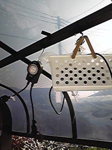 そこで、防水プログラムタイマーと防水電源ケーブルを買って、家の二階のベランダ手すりとカーポートの天井にフックを取り付け吊るしてやった。これなら踏まなくていいから、劣化もしないだろう。