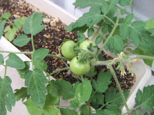 先日、小2の娘が学校からトマトの苗を持ち帰りました。ベランダにある土の入ったプランターに植え、日に日に大きくなりしばらくすると花が咲き、実がつきました。ある日の朝、娘が「リリコ、今日も元気だね!」と、いいました。リリコ???誰???娘いわく、トマトの品種名?だそうで、そのまま名前にしたとのこと。なんて可愛らしい品種名かしらと、ここまでは良かったのだが・・・娘が「ママ!リリコにちゃんとお水あげてる???」はい・・・あげてますけど・・・娘「忘れずにお水あげないと枯れちゃうんだからね!」あの・・・本来ならリリコはあなたが育てるんじゃないのでしょうか???リリコは今日も元気です。。。リリコはプチトマトではなく普通のトマト今は、ちょっと大き目のプチトマトくらいの大きさ