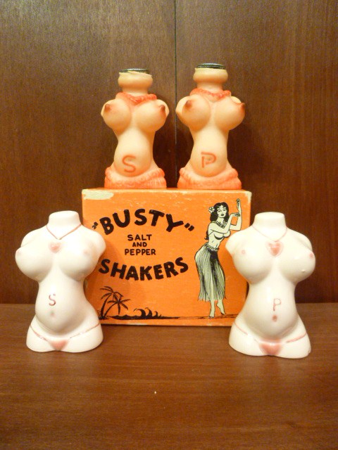 ピン・ナップ ソルト&ペッパー シェーカー 2点 ピン・ナップ ソルト&ペッパー シェーカー2点 WEBショップにてUPしました。http://antiquesbrown.ocnk.net/一つ目、豊満体形にハートのネックレス、お腹のSとPの文字が何とも愛らしいです。(陶器製)二つ目は、ソフトビニールで出来たフラガールになります。ソフビですので、触るとプニュプニュ感がリアルで良い感じです。このほかにも、色々とピン・ナップ雑貨が入荷いたしましたので、どんどんWEBショップにてUPしていきます。また実店舗もございますので、お近くに来られた際は、どうぞお立ち寄り下さい。当店では 特にピン・ナップ系に力を入れ、40s50s60sミッド・センチュリー雑貨など、アメリカン・ヴィンテージ物を中心に取り扱っています。Antiques.Brown (アンティークス・ブラウン)兵庫県姫路市網干区新在家290-56メゾン88 1F電話番号:079-272-0074 携帯: 090-9712-2745メールアドレス:matumoto.singo@blue.plala.or.jpWEBショップアドレス http://antiquesbrown.ocnk.net/