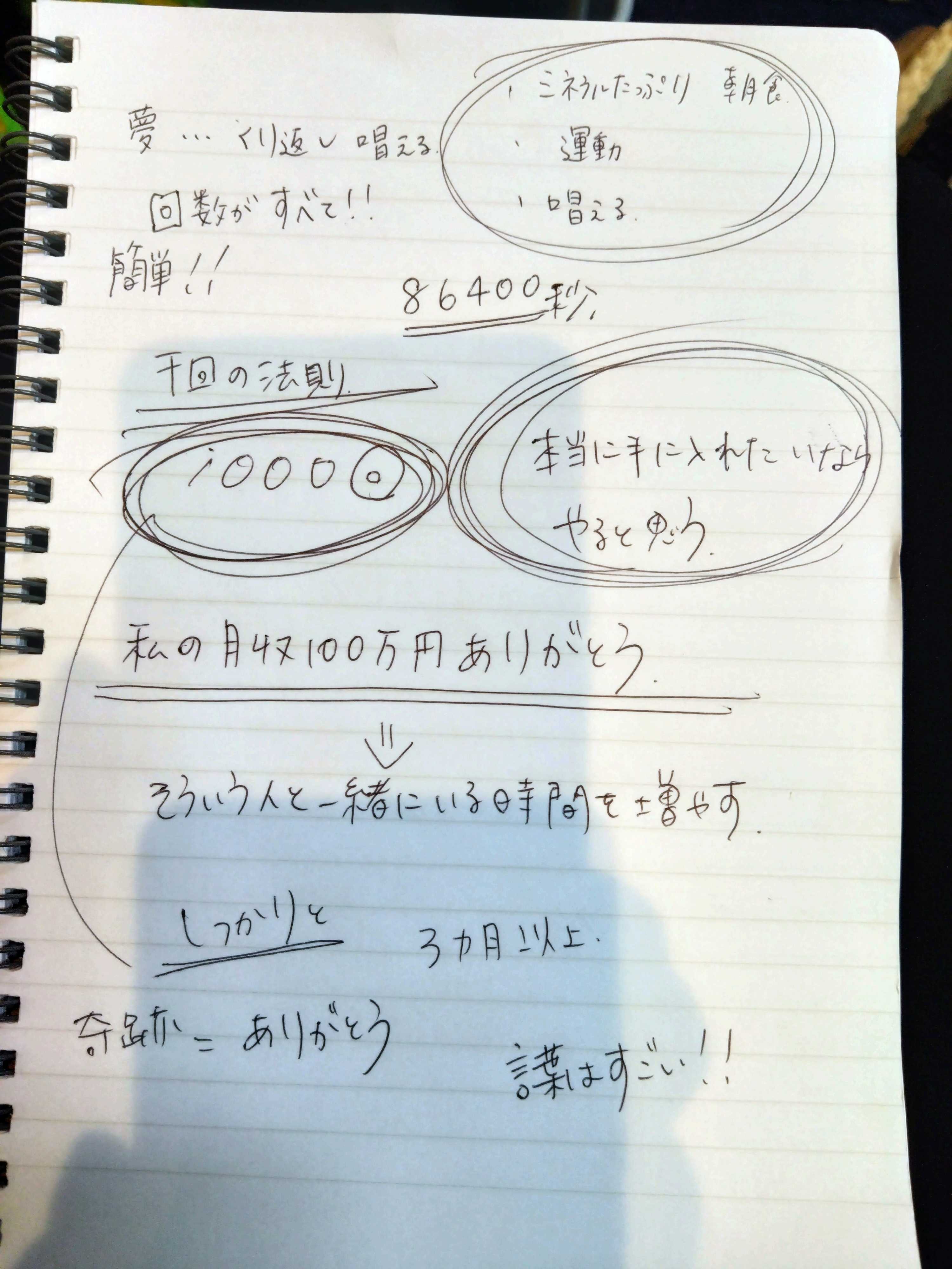 スピっててごめんなさい!今日は、銀座サロンへ行ってまいりました。言霊の講師の方のお話を聞きに。水=言葉の方程式が成り立つことがわかり、いや~奥深いなと感じてます。1日は86400秒あって、1日1000回は唱える。全てプラスの言葉に置き換える。私はやりますよ!実践あるのみ!!やるしかあんめー。簡単簡単。私はできる。私はやれる。簡単簡単超簡単。