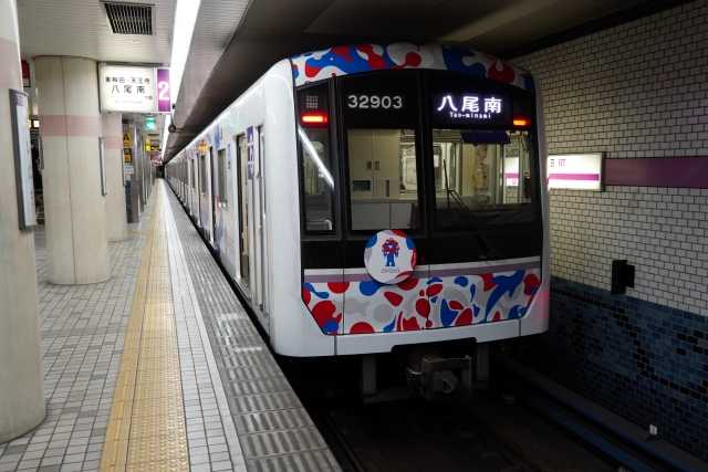 大阪メトロ 谷町線始発駅の 大日駅から乗ると隣に 次発の 大阪万博ラッピング折り返し …