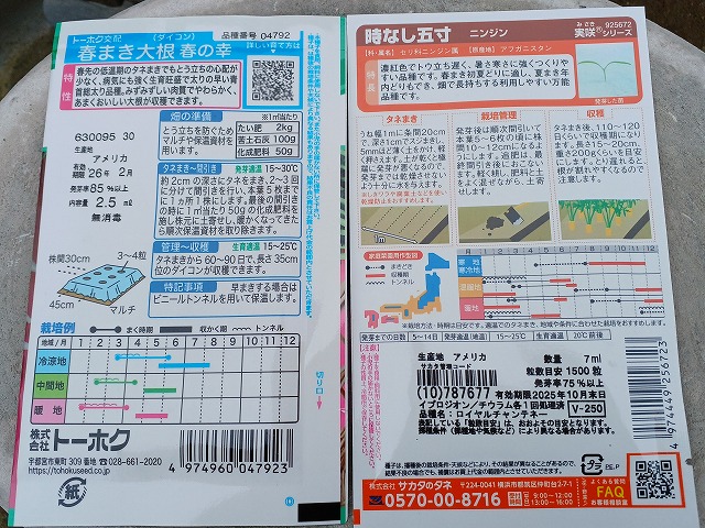 早く播けるので、最初はこれを播き、保温がいらなくなりかけたら青首を播きます。