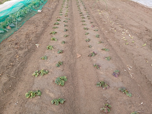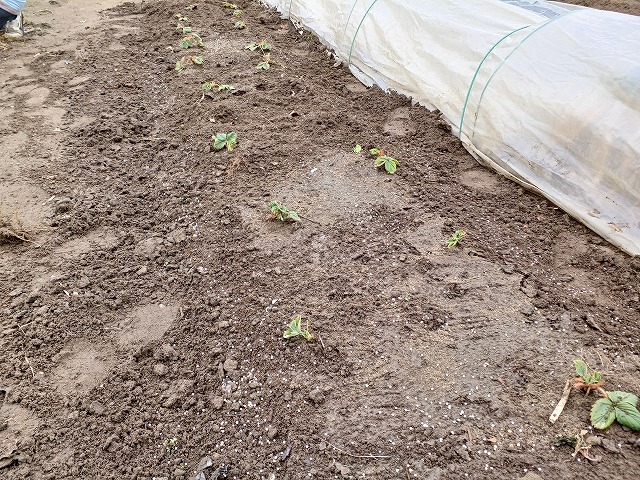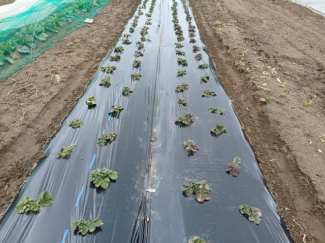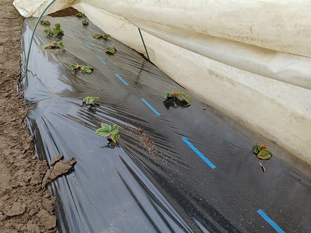 恵みの雨が降り、やっと苺のマルチを張れる状況になりました。