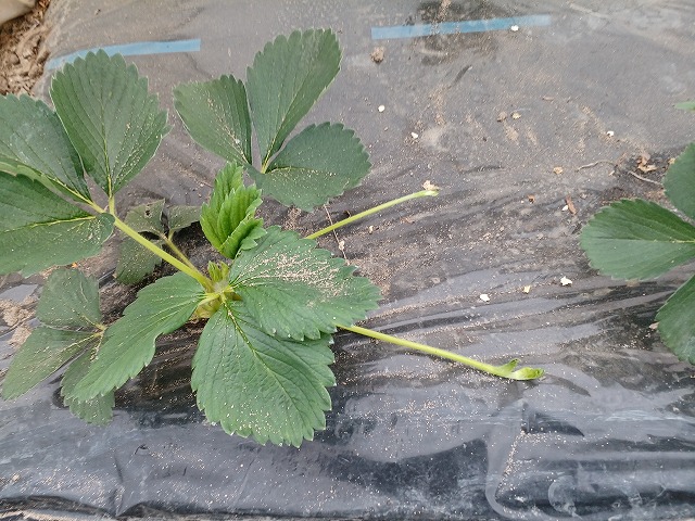 促成イチゴもランナーが沢山出て、花も沢山咲いています。