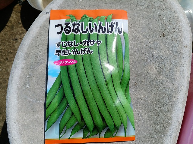 丸インゲンは播き直しても発芽しないので、新たに種を買ってまき直しました。