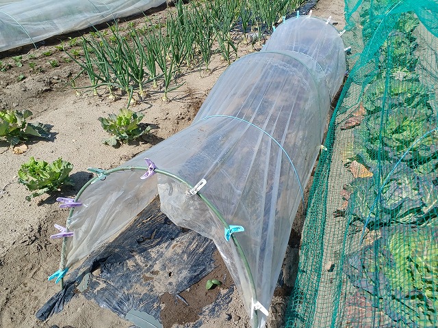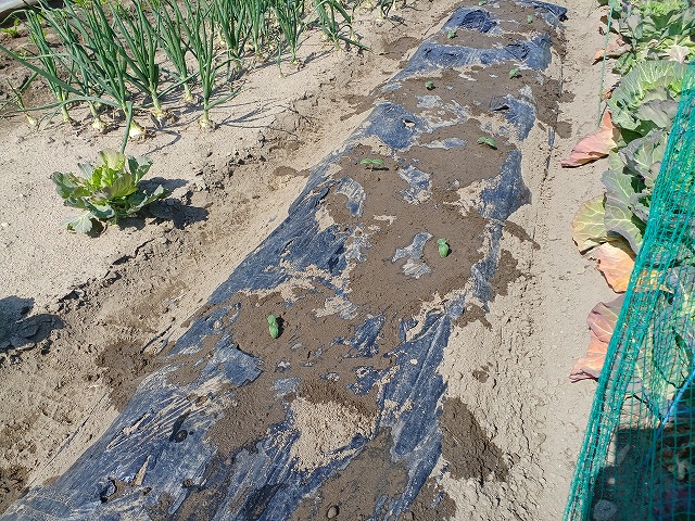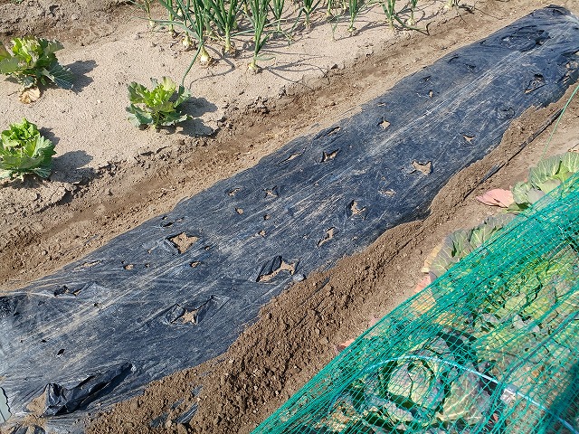 今年は石灰窒素を先日撒き、マルチをし、そこに定植します。