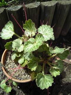 去年買ったユキノシタ。地味な植物であります。夏の間は巨大化したバジルやシソの陰に隠れて鉢が見えなかったほど・・・。でも地道に少しずつ増えつつあります。 今そのユキノシタは繁殖の季節。いつもの外見に似合わぬ派手な赤いランナーをのばしております。いや、ユキノシタがワイルドストロベリーのようにランナーで増えるって、買ってみるまで知りませんでした。なんだなんだこれは?って思いましたよ。 このランナーがどっかに着地して子株を増やしていくのです。そうしていつのまにかウチのユキノシタも数株に増えておりました。 さていろいろ使い道があるというユキノシタ。じつはもったいなくてまだ何にも使ったことないんですよね。でもそろそろ何かに使ってみようかな?まずは天ぷら?