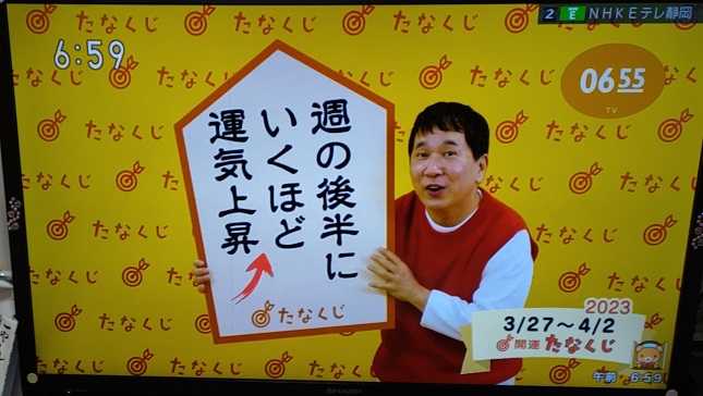 週末はたいして面白いことがなかったので祝日にお出かけしました。昼頃、パンを仕入れつつ、桜の様子を見にフラフラ。(笑)でも、桜はまだ蕾で、菜の花がとても綺麗でした。(^^)春休みに入ってからのたなくじ。最大級!期待しちゃおうかしら♪ ( ̄∀ ̄)大吉、長続き・・・?(笑)たぬ吉!田中さんが可愛いよー。(笑)健康推進。泣きながらですか?!わたくし、花粉症ではありませんが、鼻に優しいヤツは柔らかくて良いですよね。(^^)ひっきりなし!良く分からないけどすごそう!(笑)沈んだときは切り替えが大事ですよね~。何のための勇気だろうか・・・。ネコは癒しですね!!(๑•̀ㅁ•́ฅ✧結果はさておき、頑張ることが大事。( ̄∇ ̄+) ヨーグルトを食べるぞ~♪忘れ物撲滅委員会の曲だったのでチビさん「学校ないもんね~♪」ってテレビに言ってました。(笑)たぬくじはいつものヤツ。